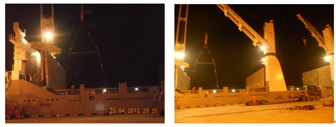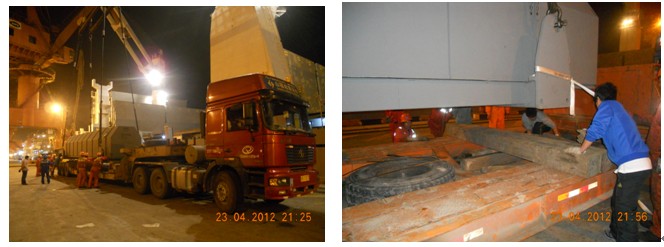 貨船靠港后,專人配合客戶辦理碼頭相關(guān)接貨手續(xù),服從碼頭調(diào)度室安排,統(tǒng)一時間,合理調(diào)配車輛,共同做好船邊直裝工作。其過程正常有序,同時認真做好了設(shè)備在車上的落點、固定和防雨等相關(guān)的工作。