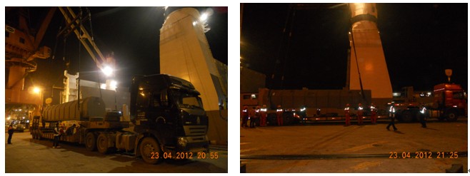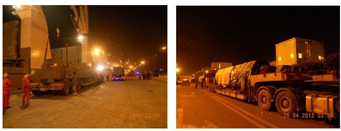 貨物信息:造紙設(shè)備11件,重量64T/件,尺寸:1200*260*200cm