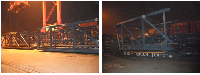 貨物資料:風電設備內(nèi)部鋼結(jié)構(gòu),11件,每件貨物寬度為4.4米