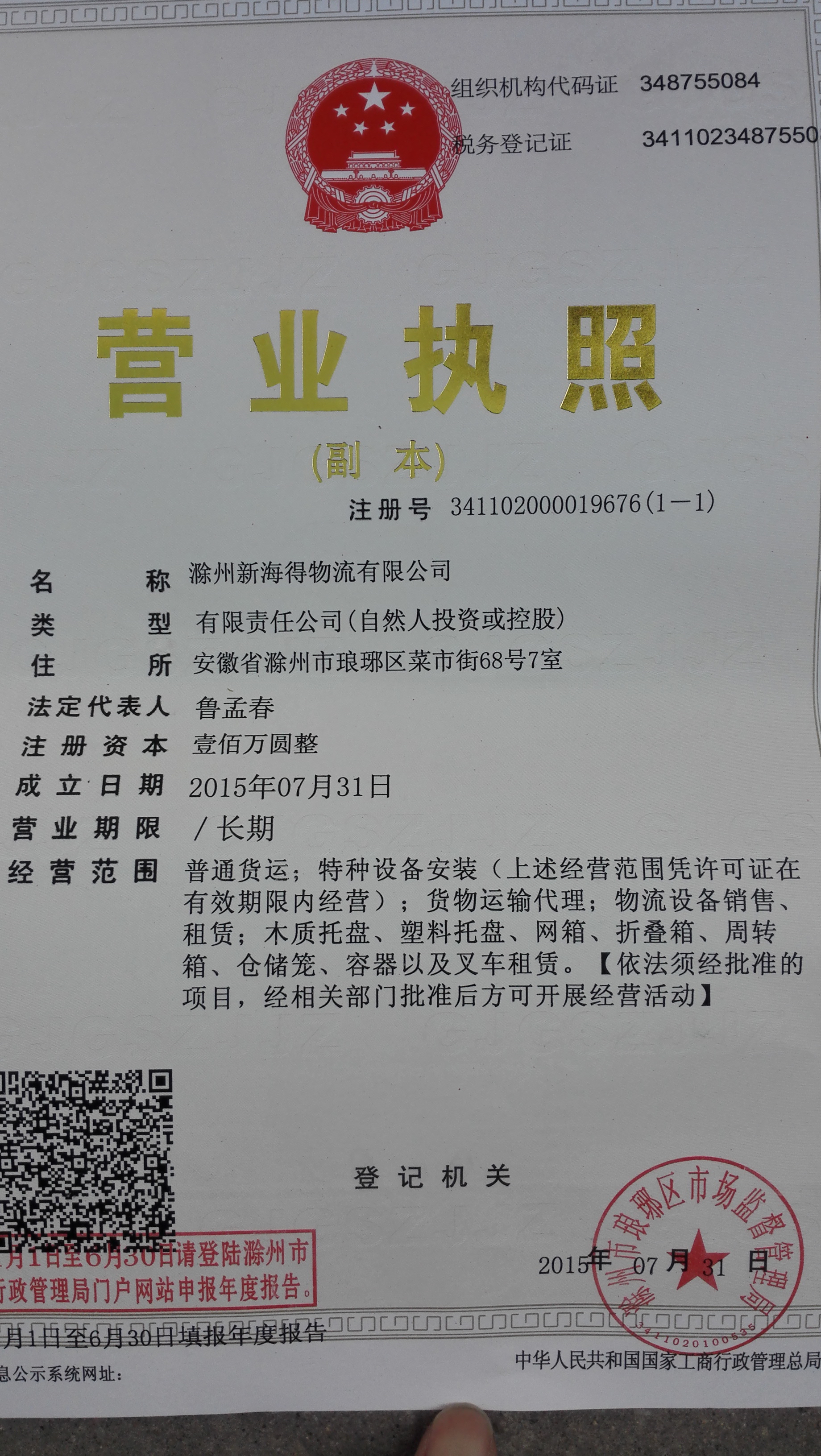 2015-9-9安徽滁州新海得物流有限公司成立,滁州新海得物流有限公司為上海新海得物流發(fā)展有限公司之全資子公司。