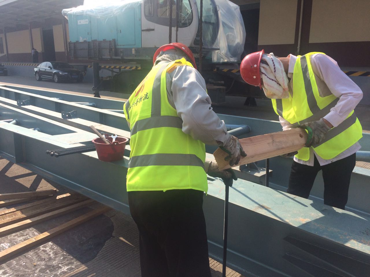 烈日炎炎,包裝團(tuán)隊(duì)頂著烈日作業(yè)(室外溫度達(dá)到40攝氏度):